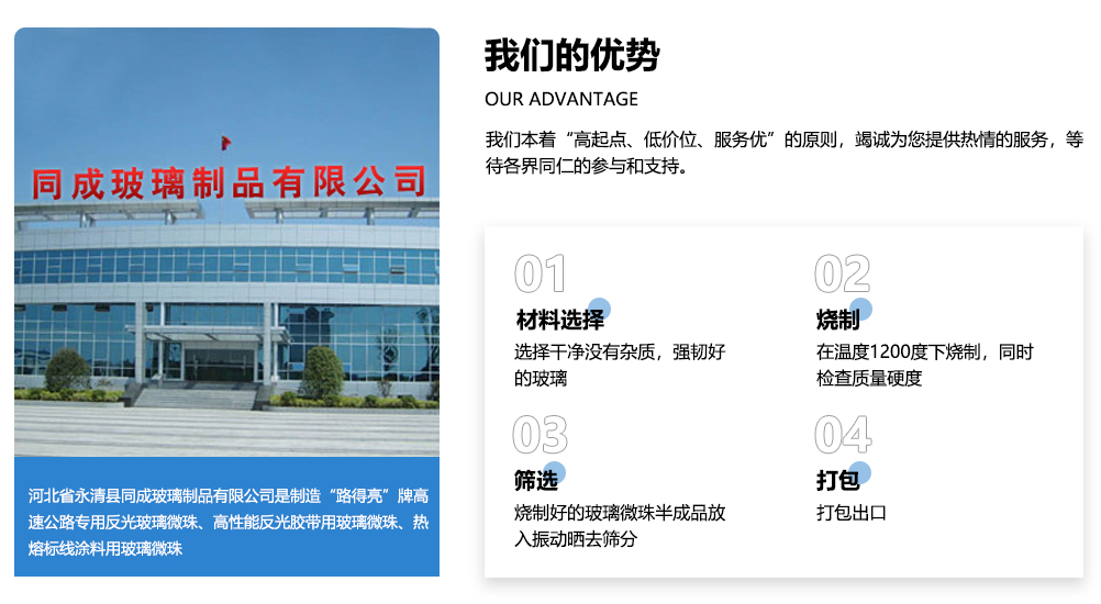 專業(yè)生產(chǎn)玻璃微珠 版權(quán)所有:玻璃微珠丨反光玻璃微珠丨噴砂玻璃珠丨道路玻璃微珠-永清縣同成玻璃制品有限公司